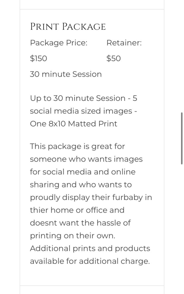 Treat your fur baby to a paw-sitively adorable mini photoshoot. Our 30-minute session captures the heart-melting moments your pet brings to your life.