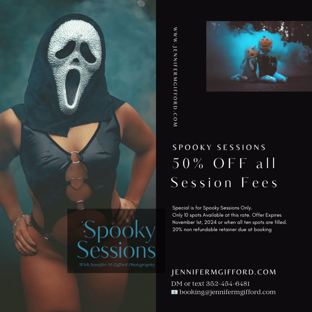 SpookySessions #HalloweenPhotography #JenniferMGiffordPhotography #PhotographyDeals #FloridaPhotographer #GetSpooky
