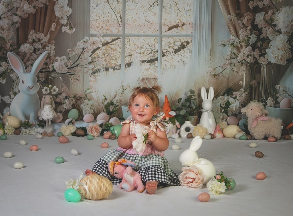 • Indoor Studio Setup – A charming, styled scene perfect for timeless portraits with soft pastel tones, elegant spring florals, and a hint of Easter magic.